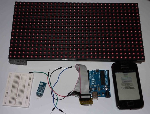 In this project I’m going to show an Android app that sends a message to your Arduino via bluetooth. And that message will be displayed in a Doted Matrix display.