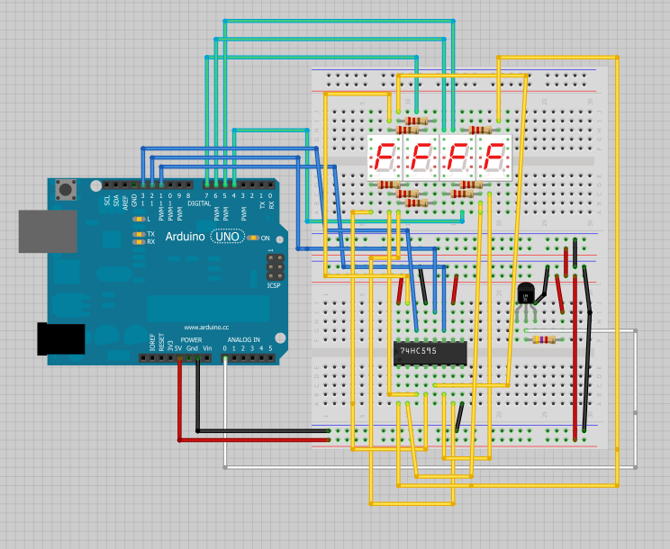 Im using 4 Digit 7 segment(SMA420564)、74HC595N and LM35