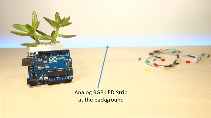 Analog strips are more used in decoration purposes. But it really depends on what you intend to do. We use an analog strip to give some color to our recording setup. In the following figure, the background color was set to cyan.