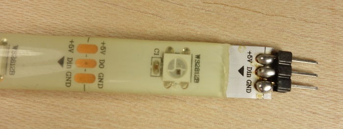 This allows a communication via a one-wire interface. This means that you can control lots of LEDs using just one digital pin of your microcontroller. These LED strips just have three pins: VCC, GND and data. VCC and GND are used to apply power to the strip and the data pin should be connected to your microcontroller.