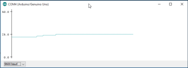 In this project the Arduino is measuring the temperature in degree Celsius (°C) and printing those readings into the Arduino Serial Plotter as shown below.