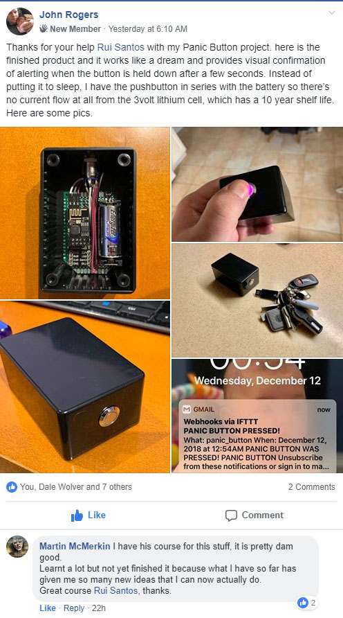 Inside that group you can ask questions and create discussions about everything related to ESP8266, ESP32, Raspberry Pi, Arduino, BeagleBone, etc. I’ll be in the group answering your burning questions about electronics.