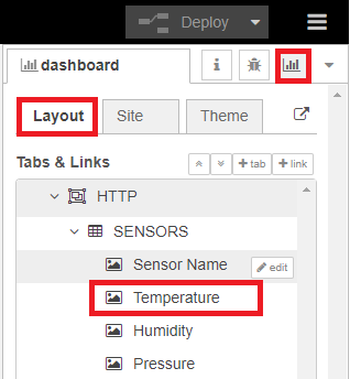 - Node-RED receives the sensor readings and displays them on gauges;