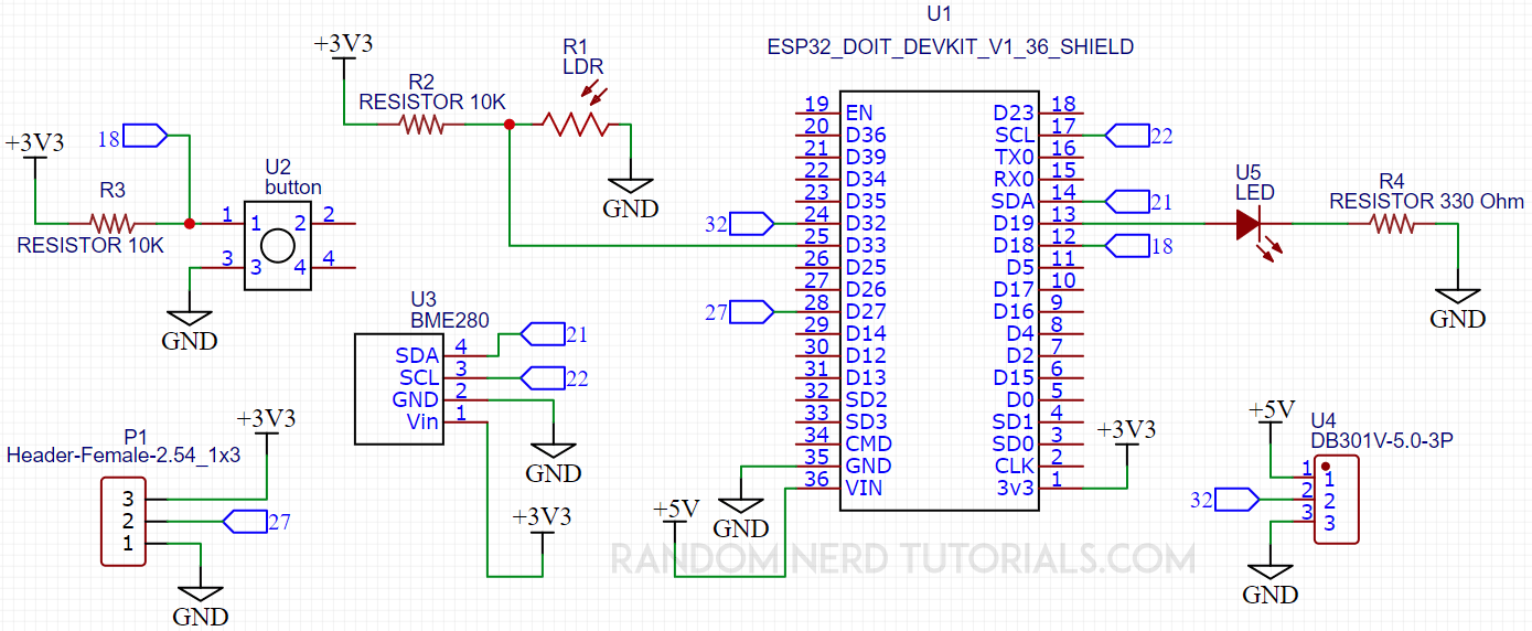 | Light Dependent Resistor (LDR) | GPIO 33 |