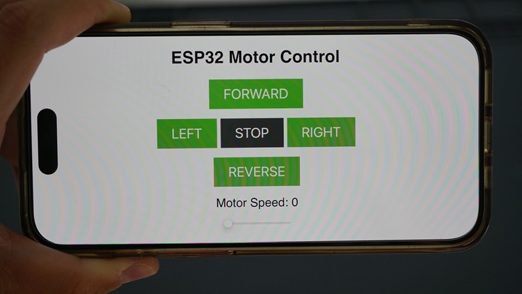 Congratulations! The ESP32 Wi-Fi Remote Controlled Car Robot is complete! You can make your robot go forward, backward, right, and left. You can stop it by tapping the STOP button. A cool feature of this robot is that you can also adjust the speed with the slider.