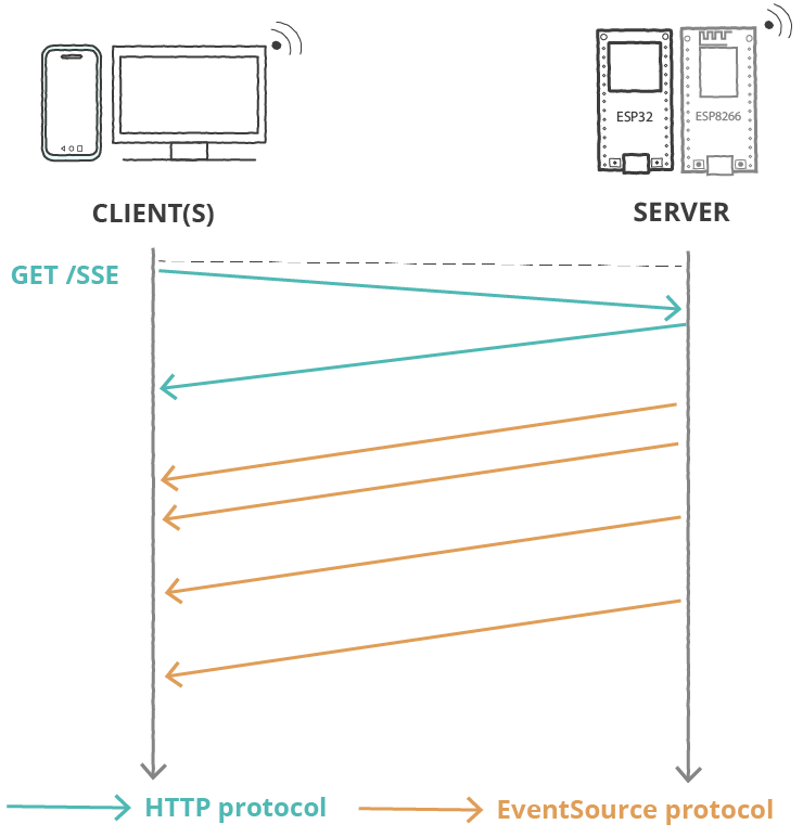 - Whenever a new reading is available, the board (server) sends it to the client using server-sent events;