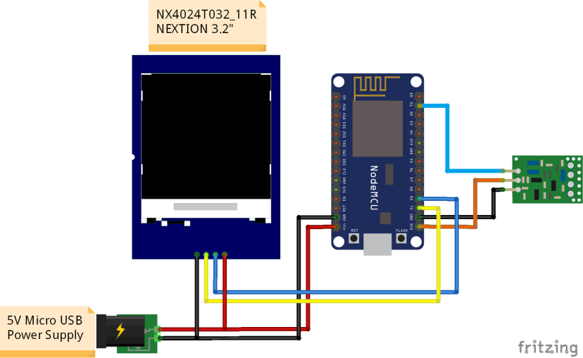 - The Nextion display TX pin should be connected to the ESP8266 RX pin.