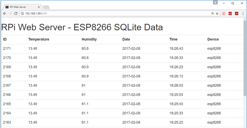 It is all working, but I got two identical entries for each 10 seconds reading in the database table and therefore in the Html web server. Same line of data appears twice. I spend hours looking at the code files lines, but could not find what is wrong… If you could give me any hint why that would be that will be great! I have followed your lines strictly.
