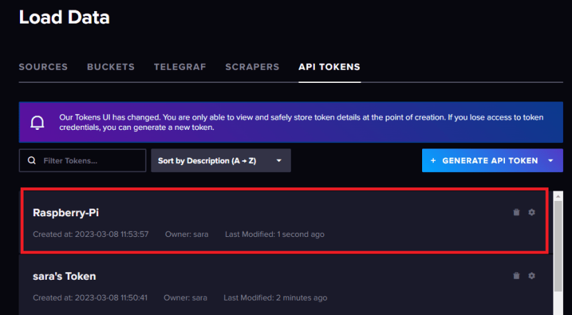 In this article, in the “Getting an InfluxDB Token” it states, “Give a description to the API Token (for example Raspberry-Pi)”, I used the bucket name “data-bucket” from when I setup the Initial User. I believe the “Generate API Token” process uses the “Description” field when creating the API Token or something.
