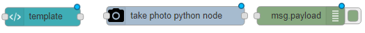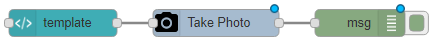 First, drag 3 nodes into the flow: template, camerapi takephoto and debug.