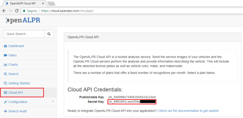 Open the Cloud API tab to access your Secret Key. You need it to make requests to the API.