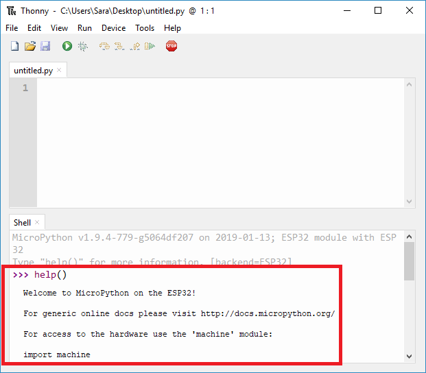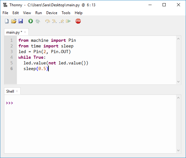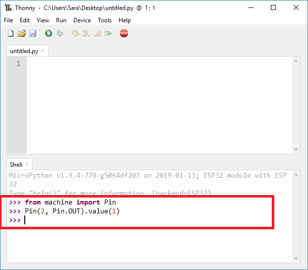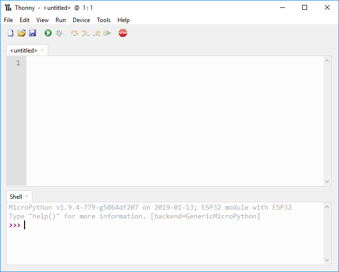 Open Thonny IDE. There are two different sections: the Editor and the MicroPython Shell/Terminal: