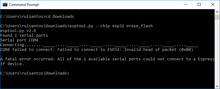 python -m esptool --chip esp32 erase_flash