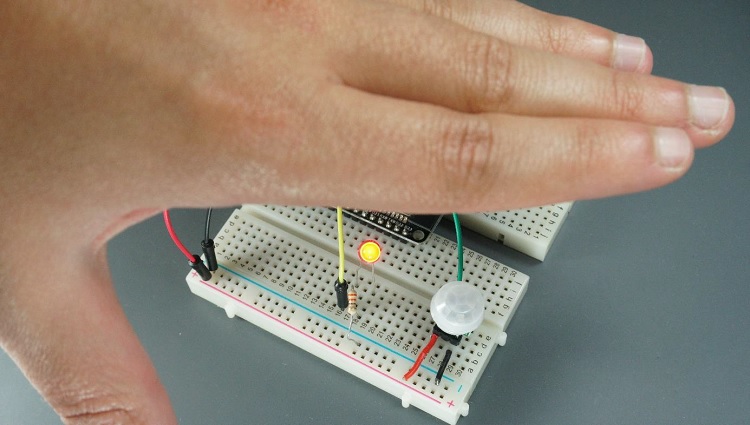To demonstrate how to handle interrupts, we’ll build a simple project with a PIR motion sensor. Whenever motion is detected we’ll light up an LED for 20 seconds.