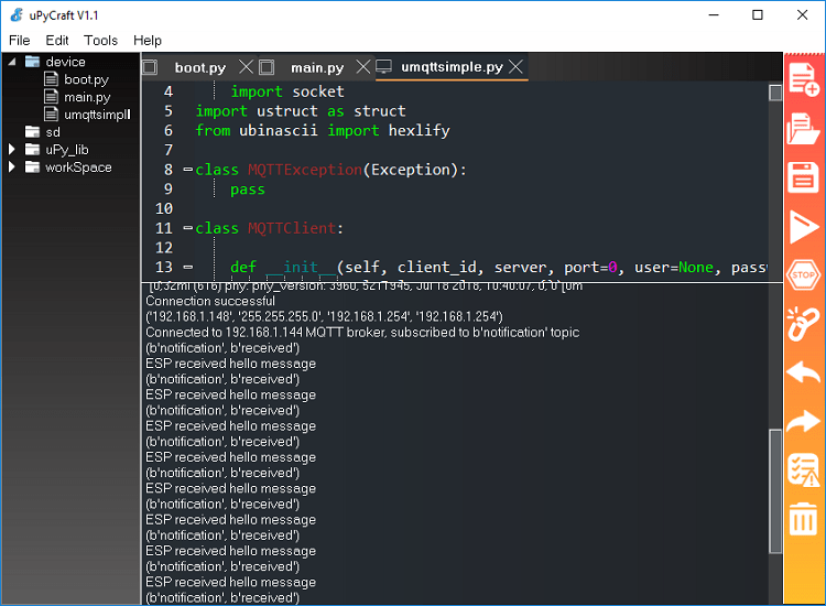 6. The file should be saved on the device folder with the name “umqttsimple.py” as highlighted in the figure below.