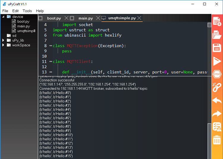 2. Copy the umqttsimple library code into it. You can access the umqttsimple library code in the following link: