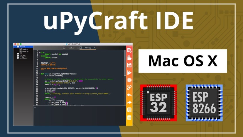 There are different firmwares that you can use to program the ESP32 and ESP8266 boards. If you want to program the ESP32 or ESP8266 board using the MicroPython firmware, we recommend using uPyCraft IDE. uPyCraft IDE runs in any major operating system. In this tutorial we’ll show you how to install the uPyCraft IDE for MicroPython on Mac OS X.
