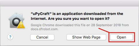 Since uPyCraft IDE is open source and downloaded from the Internet, it’s not a verified app in the App Store. For security reasons, Mac OS X blocks unknown apps to run on your computer. Follow these next instructions to enable any downloaded software to run in your Mac.
