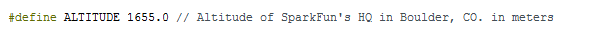 #define ALTITUDE 1655.0 // Altitude of SparkFun's HQ in Boulder, CO. in meters
