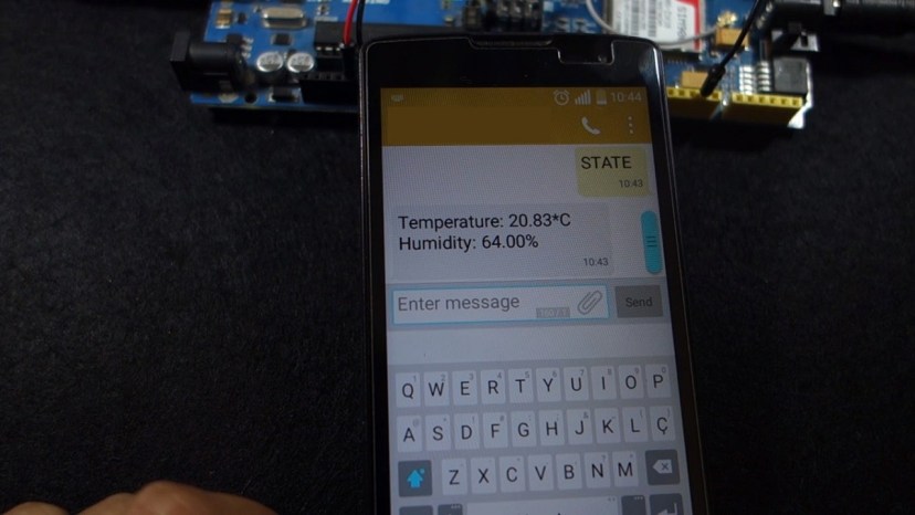 When you send an SMS to the Arduino with the message “STATE”, it replies with the latest temperature and humidity readings.