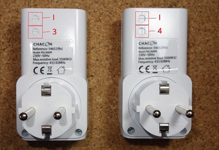 The outlets must be both on the I position. I’ve selected channels 3 and 4 for the outlets (you can use any channel you want).