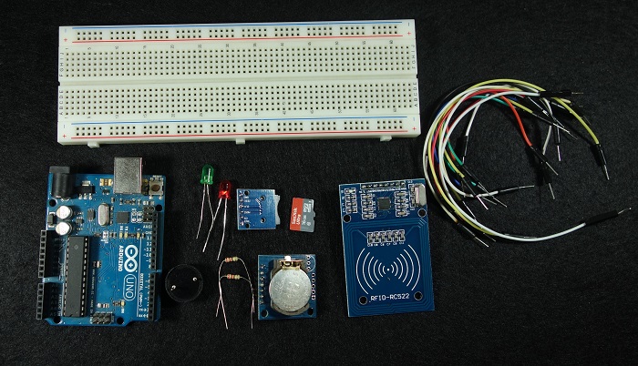 In this project you’re going to build a time attendance system with MFRC522 RFID Reader and Arduino. When you swipe an RFID tag next to the RFID reader, it saves the user UID and time in an SD card. It also shows if you are late or in time accordingly to a preset hour and minute.