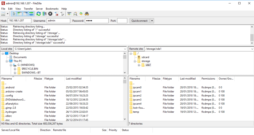The surveillance system built includes: one Raspberry Pi acting as a HUB with 1TB SATA, and 4 cameras (each one connected to a Raspberry Pi Zero W) that can be monitored through the HUB.