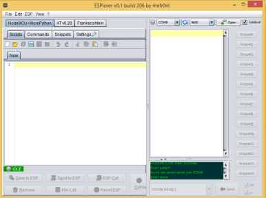 When you open the ESPlorer IDE you should see a window similar to the preceding Figure, follow these instructions to send commands to your ESP8266: