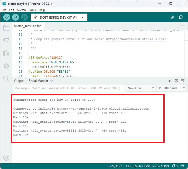 After inserting all the required settings on the code, you can upload it to your ESP32 board. If you get any error during compilation, check the following: