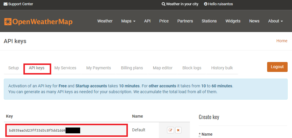 OpenWeatherMap’s free plan provides everything you need for thins example. To use the API you need an API key, known as the APIID. To get an APIID: