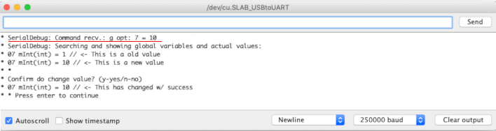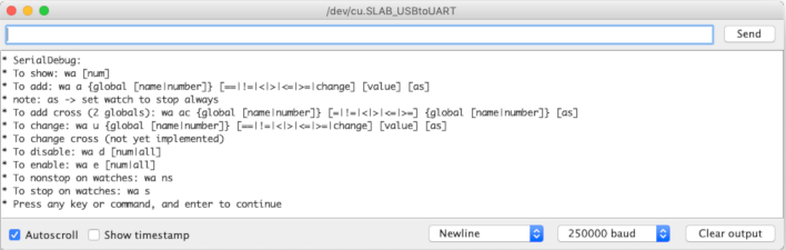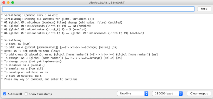 In this second article you’ve learned how to use the Simple software debugger commands of the SerialDebug library in the Arduino IDE to list and run functions, list and change global variables and set watches.