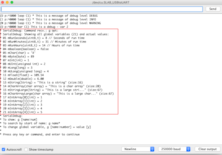 For the example SerialDebug_Advanced, we have the following: