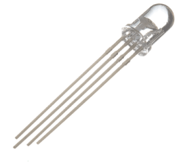 You can produce almost any color by combining those three colors. An RGB LED is shown in the following figure: