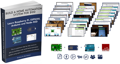 We create home automation projects using open-source hardware and software. We use ESP32, ESP8266, Arduino and Raspberry Pi. If you want to learn how to build a complete Home Automation System using Arduino, ESP8266 and the Raspberry Pi, consider taking a look at our course: Build a Home Automation System for $100.
