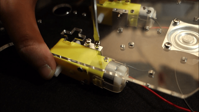 10) Finally, it is time to attach the DC motors to the chassis.