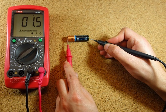 In this example we’re going to measure the voltage of a 1.5V battery. You know that you’ll have approximately 1.5V. So, you should select a range with the selection knob that can read the 1.5V. So you should select 2V in the case of this multimeter. If you have an autorange multimeter, you don’t have to worry about the range you need to select.