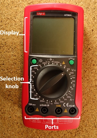- Probes: a multimeter comes with two probes. Generally one is red and the other is black.