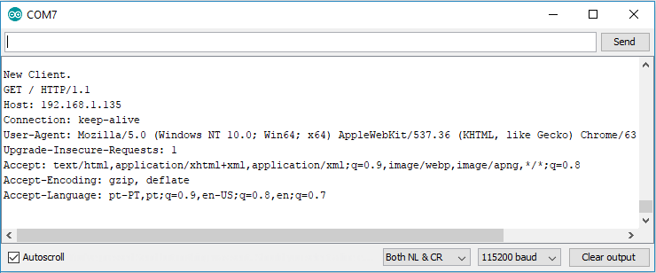 Serial.println("New Client."); // print a message out in the serial port