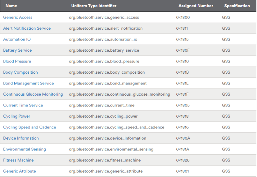 There are shortened UUIDs for all types, services, and profiles specified in the SIG (Bluetooth Special Interest Group).